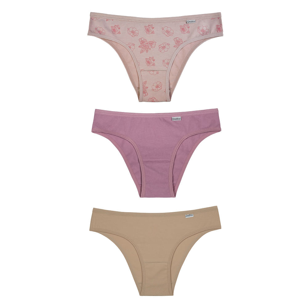 Kit 3 Calcinhas Tipo Biquini em Cotton Delrio.o Básico Mais Desejado, com Fibra Natural de Algodão, Laterais Médias, Perfeito Para o Dia a Dia.