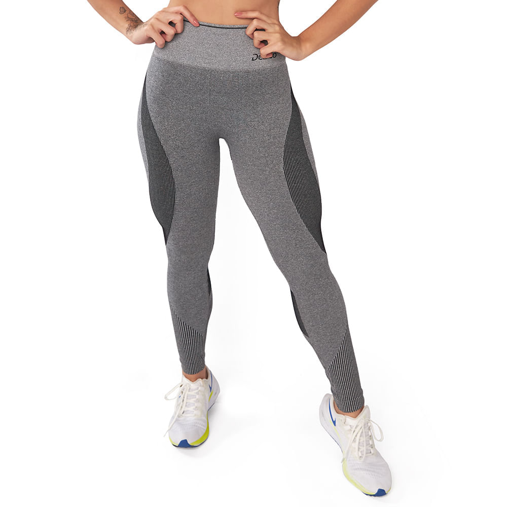Calça Legging Fitness Sem Costura Canelada Nas Laterais Mescla