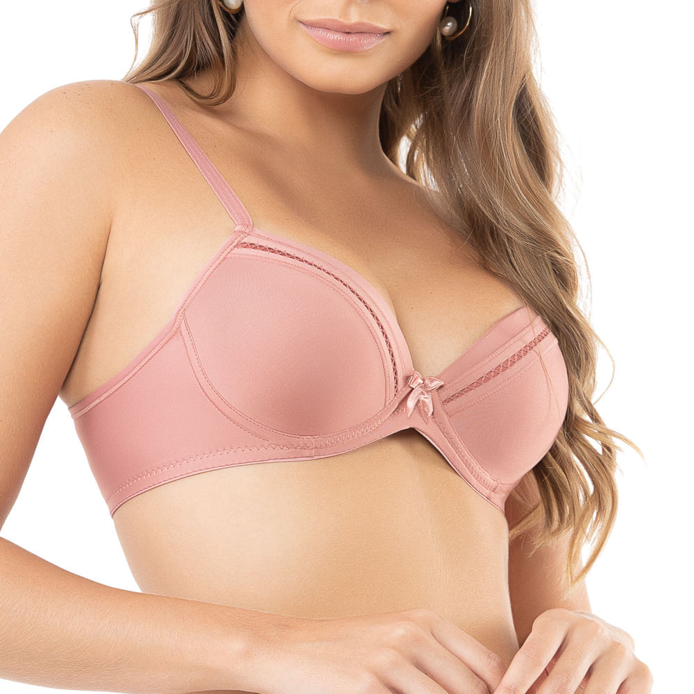 Underwear FemininoSoutiensCom BojoSoutien Microfibra Ponto de Crochê com Bojo com Aro Rosa Chá