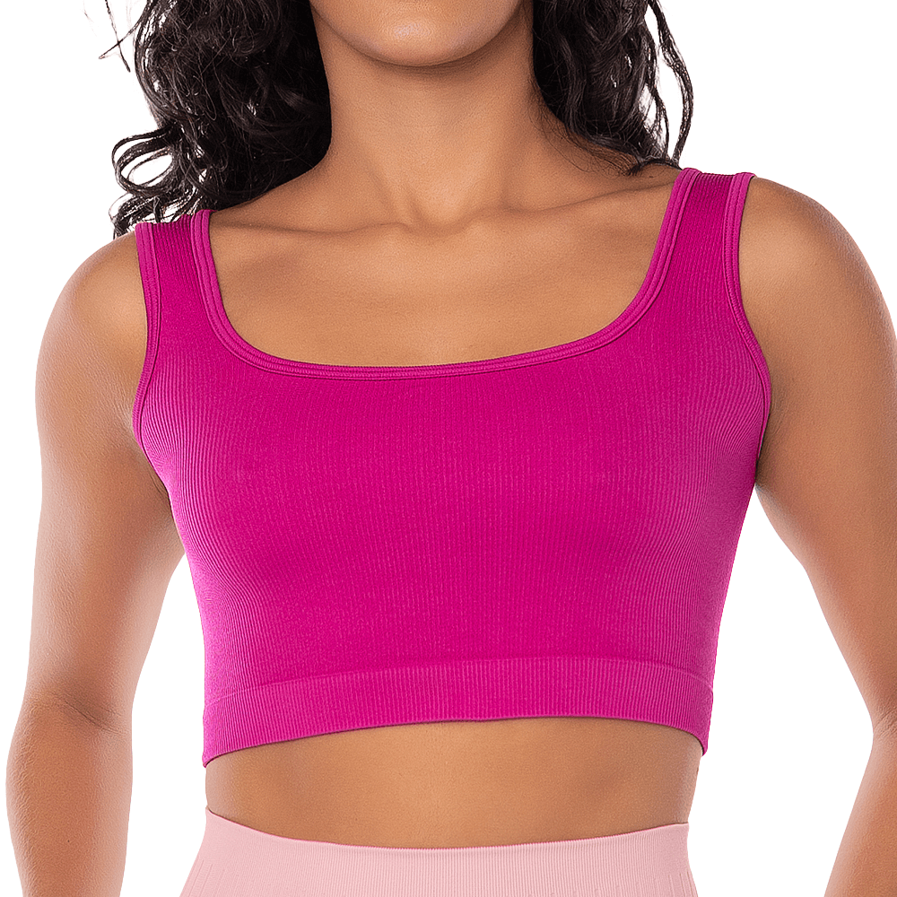 Moda DelRioRoupas FemininasBlusas e CamisasCropped Teen Canelado Com Alças Largas Fúcsia