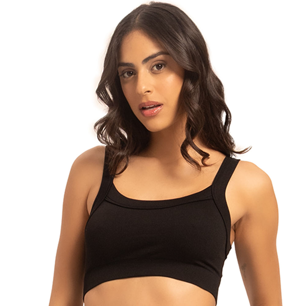 Top Sem Costura Canelado Preto